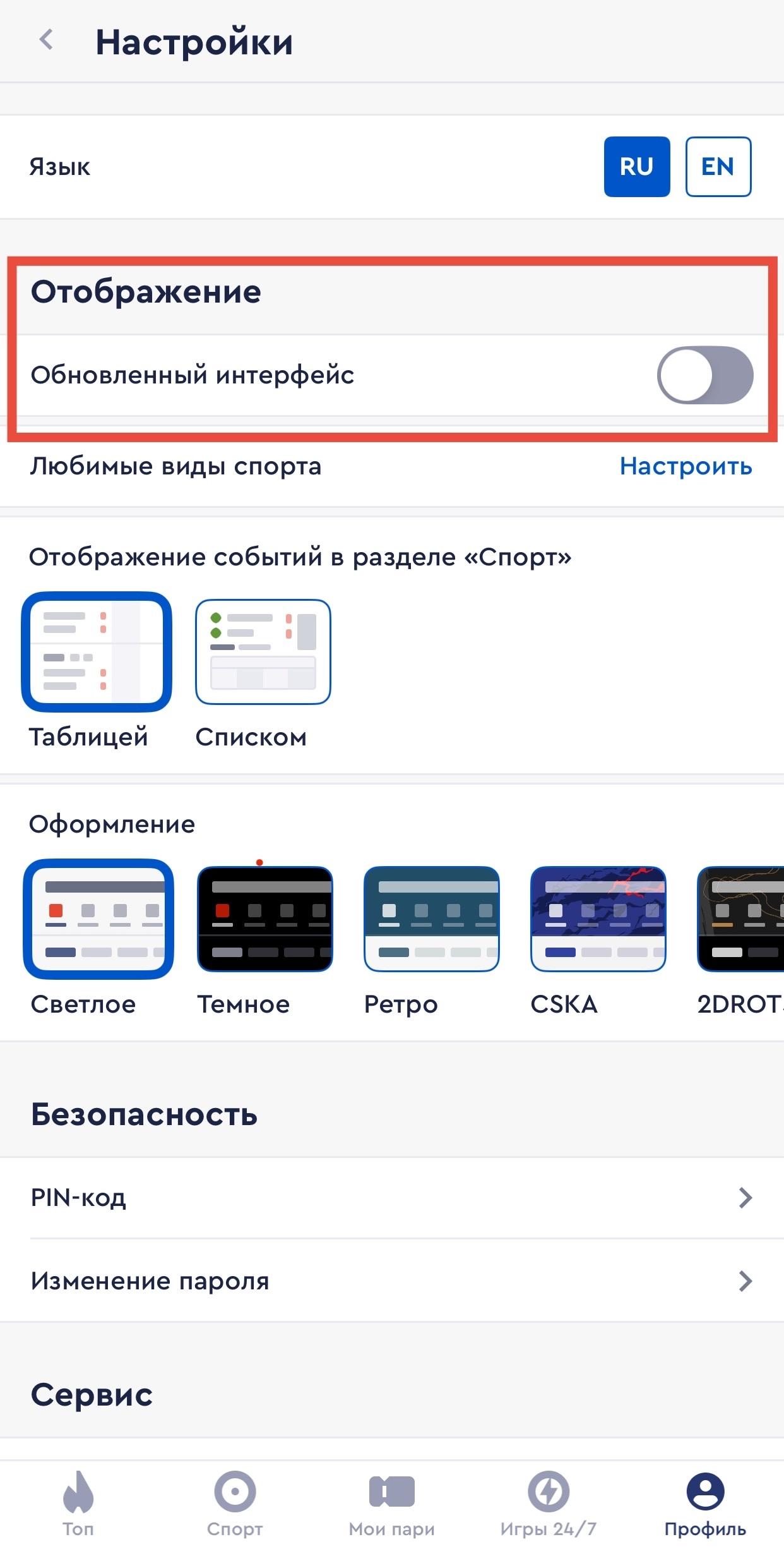 Потому что как минимум в описании апдейта в App Store не было ни слова о новом дизайне, а принудительно пересаживать всех клиентов на него букмекер не стал — кому-то просто добавил ползунок в настройках, переключив который как раз можно врубить новую версию.