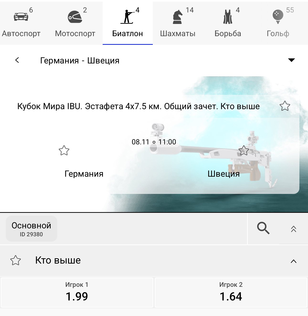 В линии «Бет-М» — 33 вида спорта: от классики вроде футбола, тенниса и хоккея до экзотики — крикета, гольфа, и дартса. Даже на биатлон, где Кубок мира стартует только через три недели, уже заряжены линии. Правда, выбор пока маловат, а маржа — под 10%: