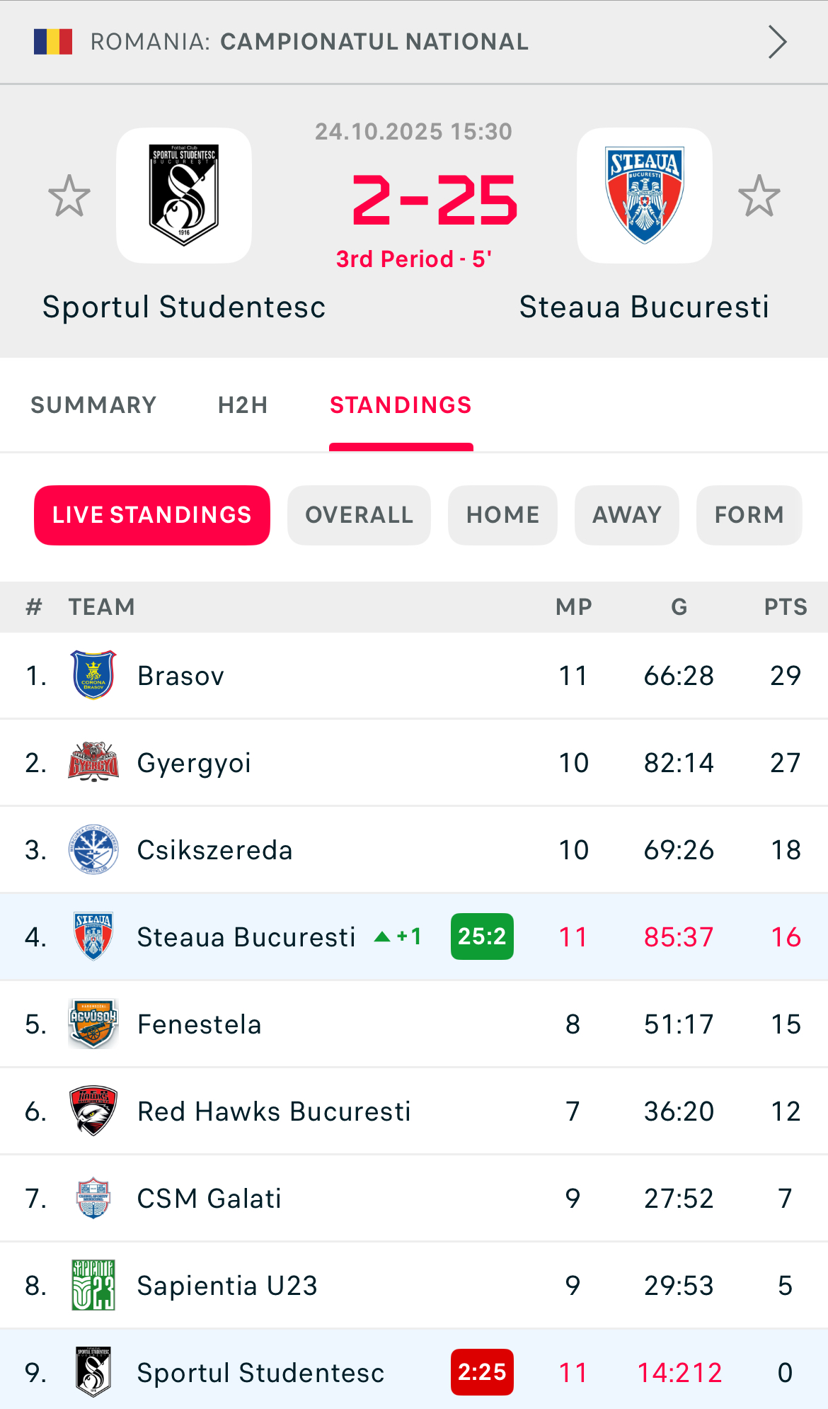 Результаты соответствующие: только за 11 матчей в этом сезоне «Спортелул» пропустил уже 212 шайб, почти по двадцаточке в среднем. Сегодня деды-приколисты идут на рекорд — выхватили 25 голов за два периода от базового середняка «Стяуа».