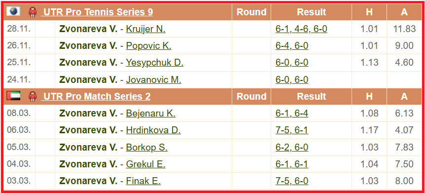 В первом круге Дубая Звонарёва должна сыграть с 23-летней Тарой Вюрт из Хорватии (239-я ракетка мира). Букмекеры считают россиянку андердогом, хотя не так чтобы явным — для 41-летней теннисистки, не игравшей на высоком уровне полтора года, на неё дают даже неприлично мало: