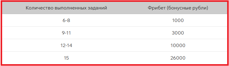 Чтобы получить те самые 56 тысяч, нужно было залетать в акцию в самом начале — 8 декабря, и выполнять все задания без пропусков. Самих заданий — 15, за каждое из них «Марафон» начисляет фрибет в размере 2026 рублей, а самым активным в конце (акция завершится 11 января) полагаются дополнительные вознаграждения как раз в зависимости от количества пройденных этапов. Максимум — 26 тысяч за 15/15, а в сумме с 30 тысячами за каждое отдельное задание как раз и получается 56.