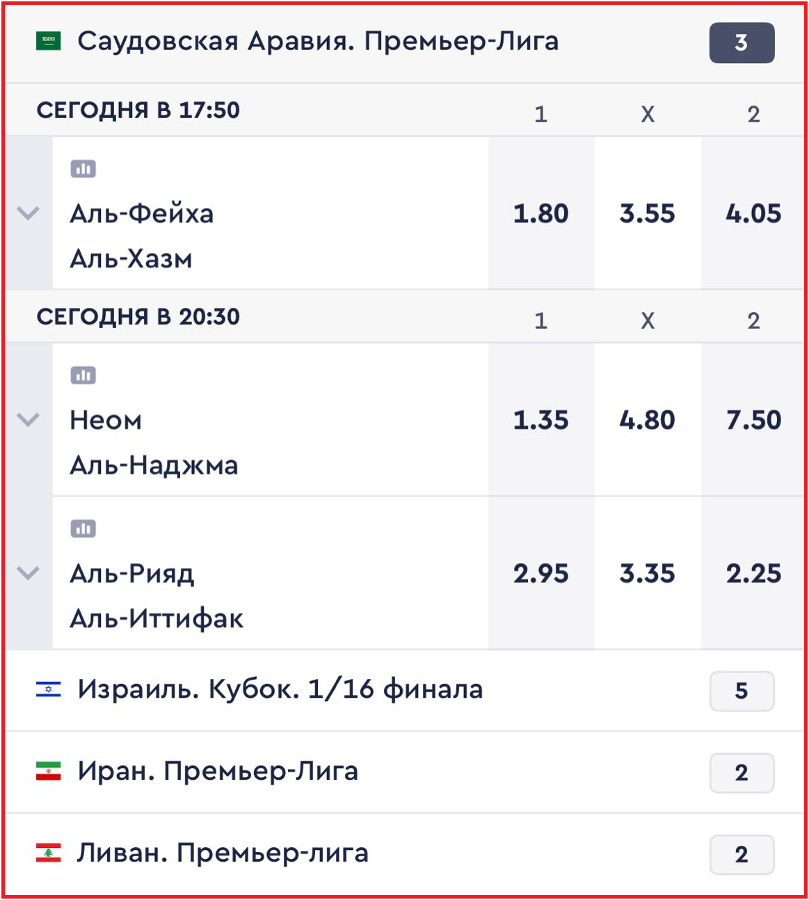 По сути единственное, за чем может быть хоть немного интересно понаблюдать — это матчи чемпионата Саудовской Аравии, где нам хотя бы многие лица знакомы: например, за «Аль-Иттифак» гоняет Вейналдум, за «Аль-Фейха» — Смоллинг, за «Неом» — Ляказетт. Но больше нам порадовать вас нечем: для истинных ценителей ещё есть Кубок лиги Египта, чемпионат Алжира и всё в таком духе.