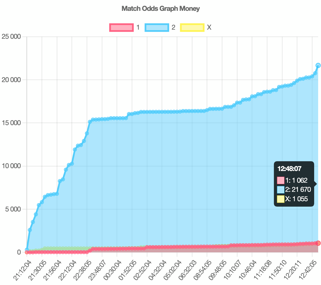 Судя по всему, «Аль-Ахли» сегодня снова достанется — главные лица основы всё ещё катают за сборные, а клуб сыграет дома против «Араб Контракторс» (или «Аль-Мокавлун») в матче Кубка Лиги. Прогружать победу гостей начали ещё прошлым вечером — к полуночи по МСК на П2 уронили 15 тысяч евро, к 15:00 туда прилетели ещё 6 тысяч.