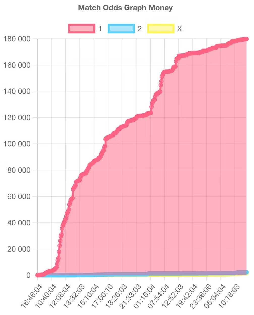 En concreto: 185 mil euros en la bolsa de Betfair, de los cuales 180 mil fueron directamente a la victoria de los Rangers. Con ese peso, la cuota al 1 se desplomó más del doble: de los 2.20 iniciales a 1.57.