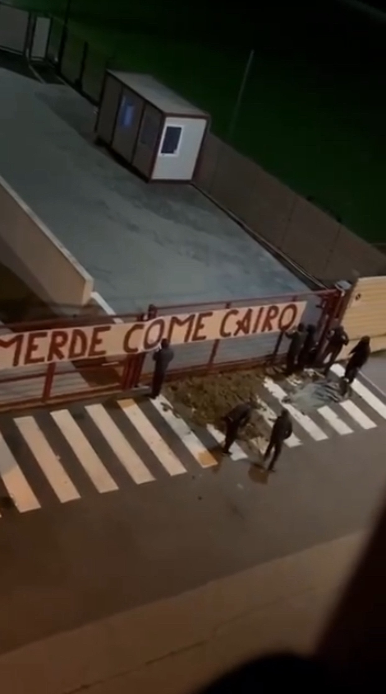 Los aficionados acompañaron esta instalación artística con una pancarta que decía "Mierda, como Cairo" en referencia a Urbano Cairo, propietario del Torino desde 2005.