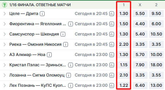 / меньше — 1.80. Кстати, за всё время существования турнира эта ставка зашла всего раз — в ответках 1/8 финала прошлого сезона было шесть побед хозяев. Больше ни разу на этой стадии и 1/16 финала не было такой доминации.