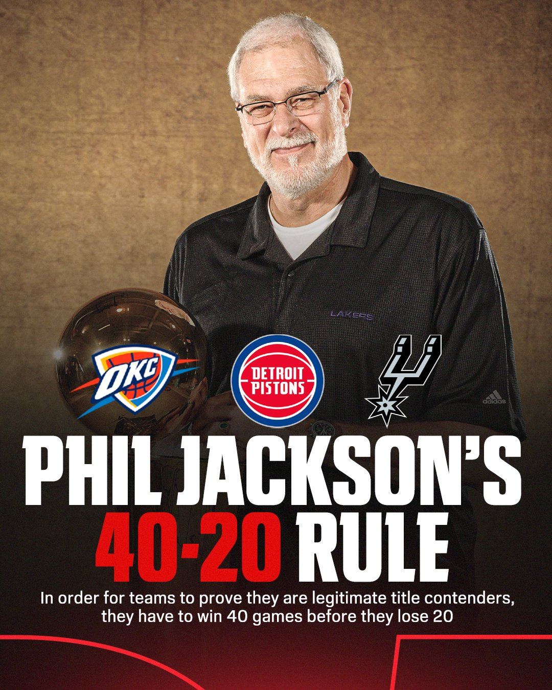 В чём суть: в 2008-м самый титулованный тренер в истории НБА предложил простой, но действенный критерий определить настоящего контендера. Чтобы команда считалась элитной, она должна набрать 40 побед в регулярке раньше, чем 20 поражений.