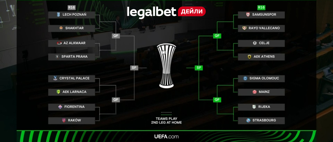 1.85 «АЗ Алкмаар» — «Спарта» (1.89) (1.03) «Кристал Пэлас» — АЕК Ларнака (10.00)(4.50) «Лех» — «Шахтёр» (1.18)(4.40) «Самсунспор» — «Райо Вальекано» (1.18)(8.10) «Сигма» — «Майнц» (1.06)(4.80) «Риека» — «Страсбур» (1.16)(1.60) «Фиорентина» — «Ракув» (2.26) (4.50) «Целе» — АЕК 1.18