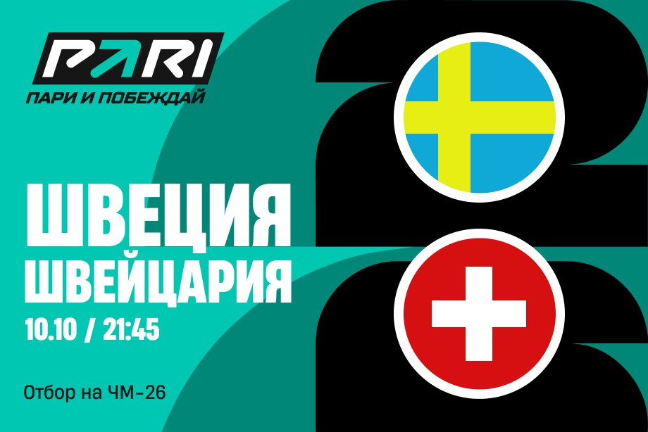 10 октября в матче отборочного этапа группы B к чемпионату мира по футболу 2026 года сыграют между собой сборные Швеции и Швейцарии. Встреча пройдет на стадионе «Строберри Арена» в шведском Стокгольме и начнется в 21:45 по московскому времени. Аналитики букмекерской компании PARI проанализировали шансы команд и рассказали о ставках своих клиентов на один из ключевых матчей игрового дня.