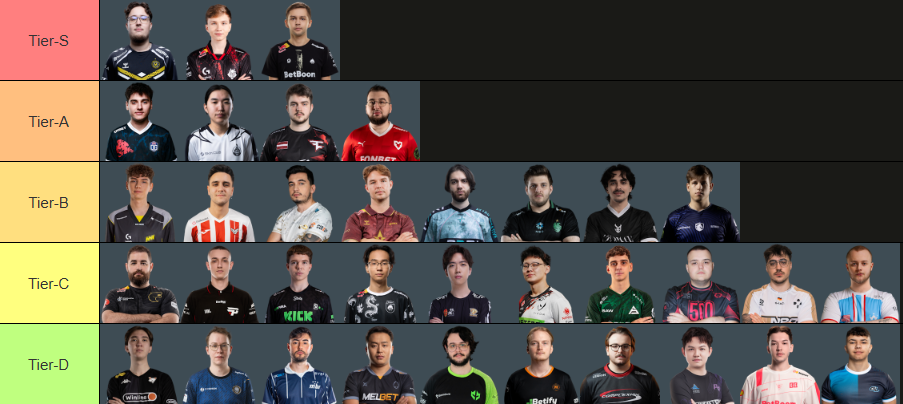 Возглавили рейтинг ZywOo, m0NESY и sh1ro. В то же время в низший, D-тир, Браун поместил ICY и zorte.