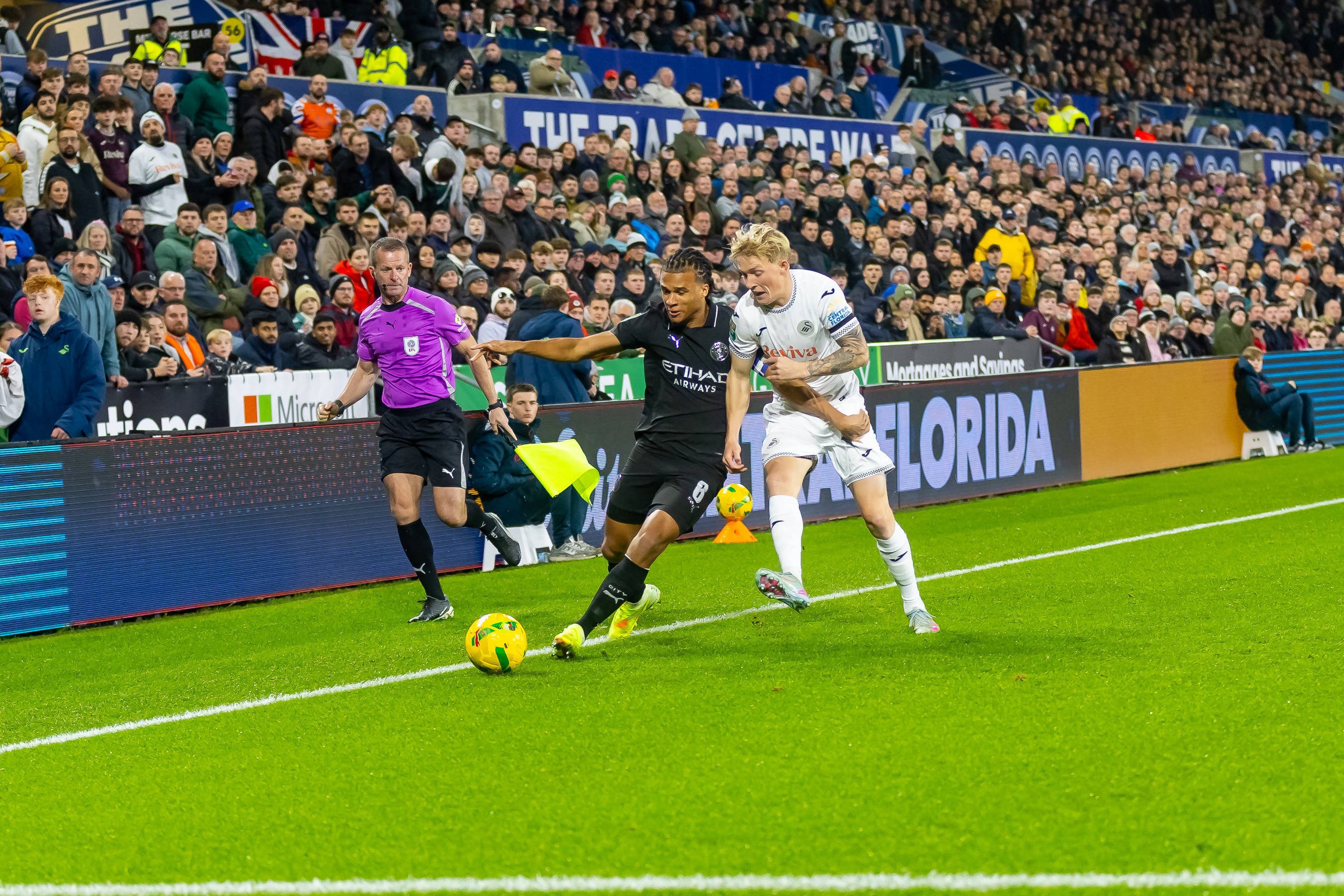 «Манчестер Сити» одержал победу над «Суонси Сити» со счётом 3:1 в матче 1/8 финала Кубка английской лиги. Игра прошла на «Суонси Стэдиум».