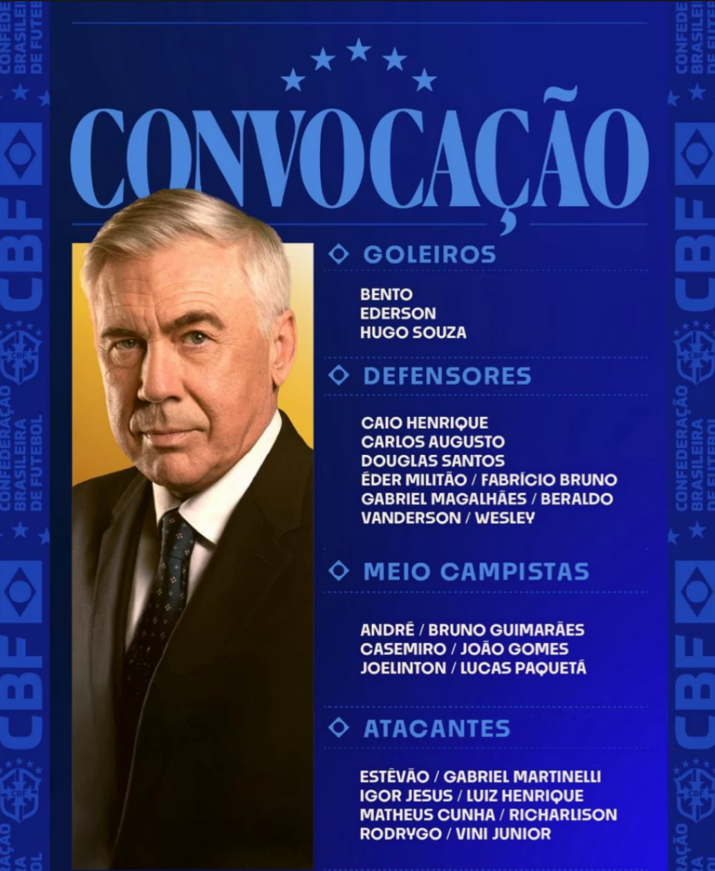 10 октября под руководством главного тренера Карло Анчелотти бразильская сборная проведёт товарищеский матч с Южной Кореей, а 14 октября сыграет с Японией. В сентябре Сантос и Энрике также были приглашены в национальную команду.