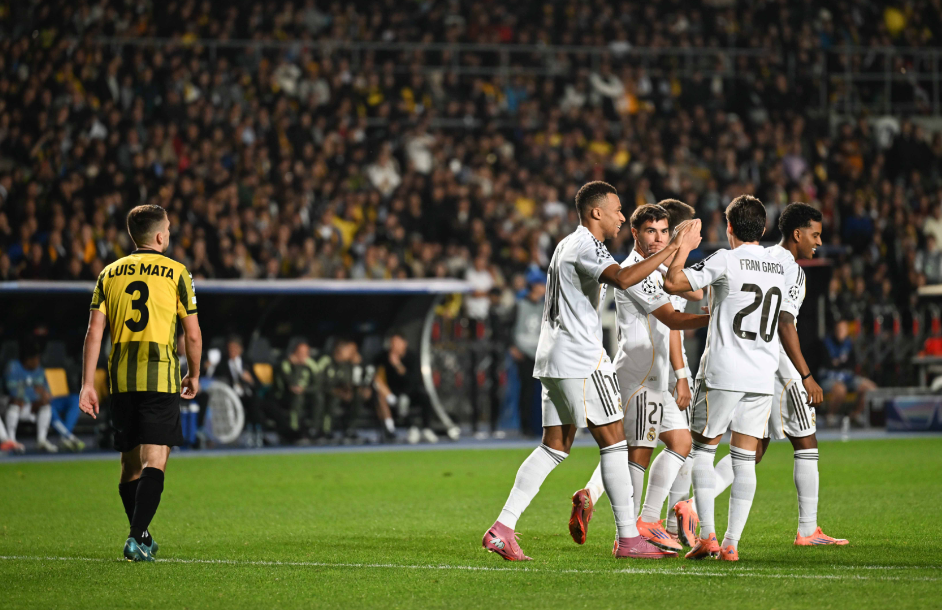 - В первом туре мадридский клуб дома одержал победу над «Марселем» (2:1), а «Кайрат» уступил в гостях «Спортингу» (1:4). Следующий матч «Реал» проведет 22 октября дома против «Ювентуса», а «Кайрат» сыграет 23 октября на своём поле с «Пафосом».