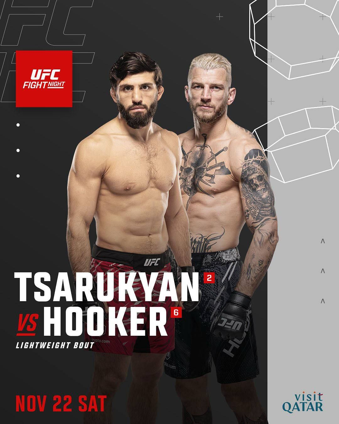 Второй номер рейтинга UFC в лёгком весе Арман Царукян проведёт следующий поединок против шестого номера рейтинга Дэна Хукера на турнире UFC в Катаре. Об этом сообщила пресс-служба промоушена.