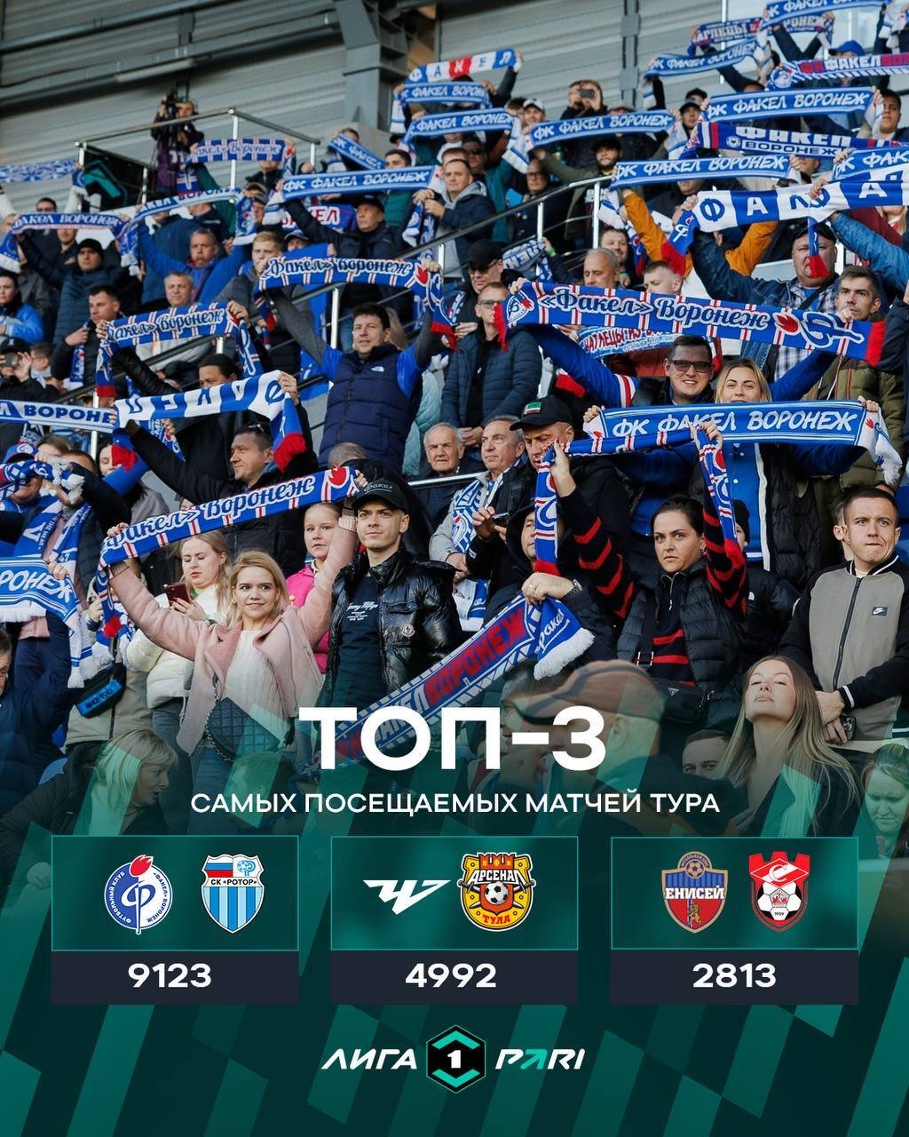 Замкнула тройку игра в Красноярске, где «Енисей» принимал костромской «Спартак» (1:0) — там присутствовало 2 813 человек.