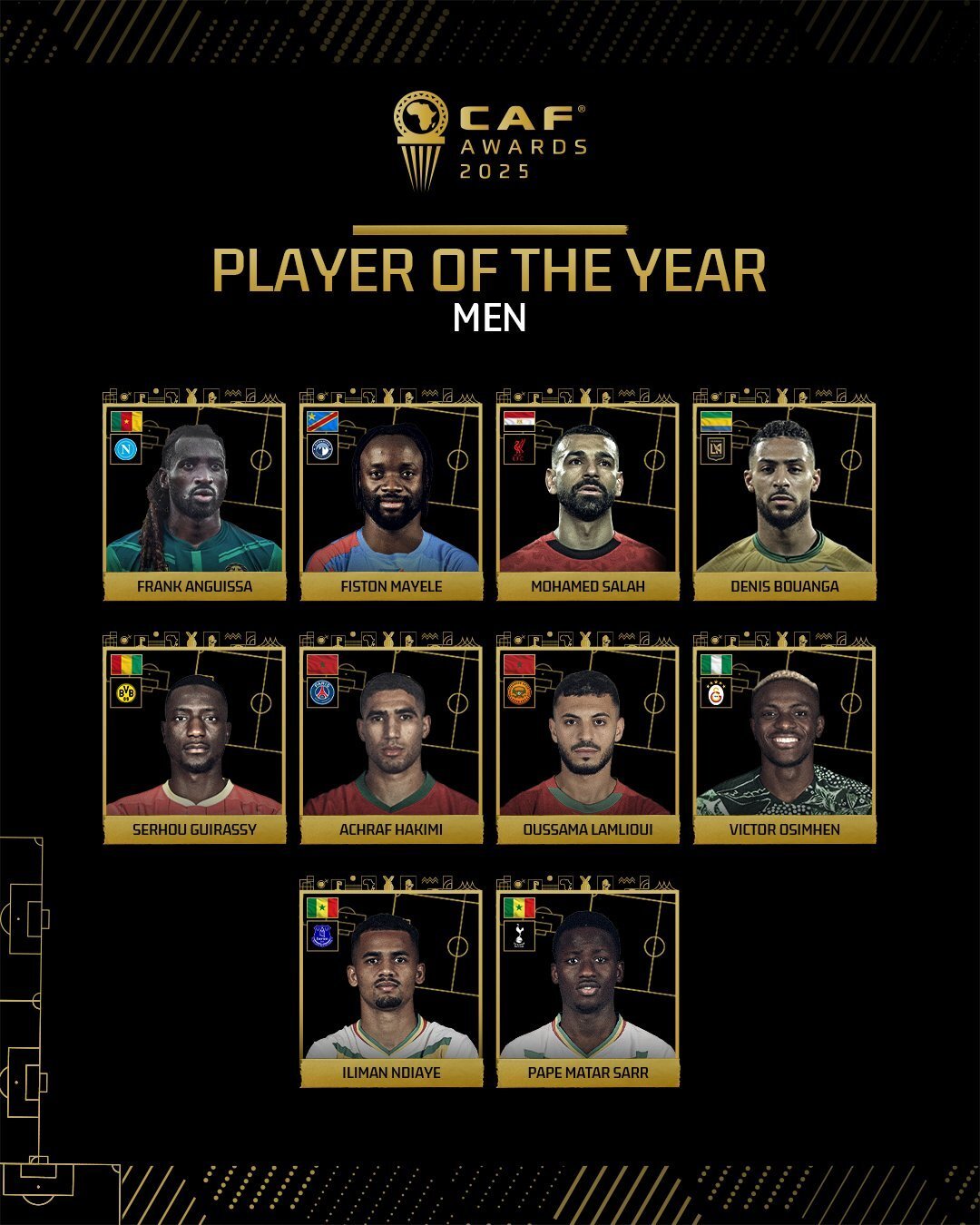 Конфедерация африканского футбола (CAF) опубликовала список номинантов на приз лучшему африканскому футболисту 2025 года. На награду претендуют 10 игроков.