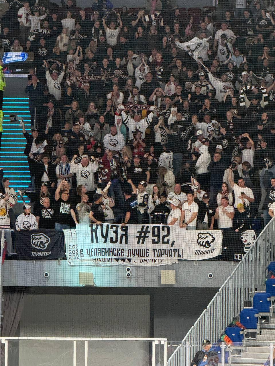 Фанаты «Трактора» вывесили баннер с обращением к нападающему «Металлурга» Евгению Кузнецову на игре регулярного чемпионата Фонбет Континентальной хоккейной лиги (КХЛ) с «Шанхай Дрэгонс» (4:5 ОТ).