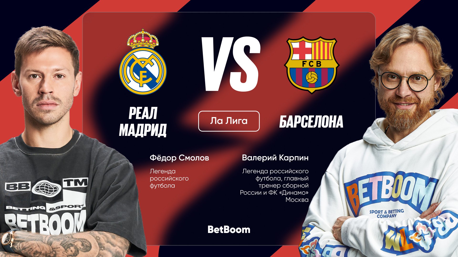 Футбольный мир затаил дыхание — грядет «Эль Класико». Уже совсем скоро «Реал Мадрид» и «Барселона» вновь сойдутся в великом противостоянии, где каждая минута решает судьбу легенд. Специально к матчу амбассадоры BetBoom, Федор Смолов и Валерий Карпин, делятся своими ожиданиями от игры. Двое людей, знающих футбол изнутри — игрок и тренер — расскажут, чего ждать от новой битвы титанов.