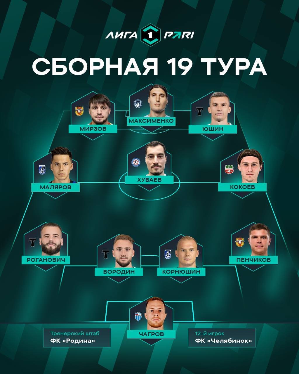 Пресс-служба Лиги PARI представила символическую сборную по итогам 19-го тура чемпионата. В команду был включён вратарь «Ротора» Никита Чагров, который пропустил два мяча после 12 ударов в створ в матче с «Торпедо» (0:2).