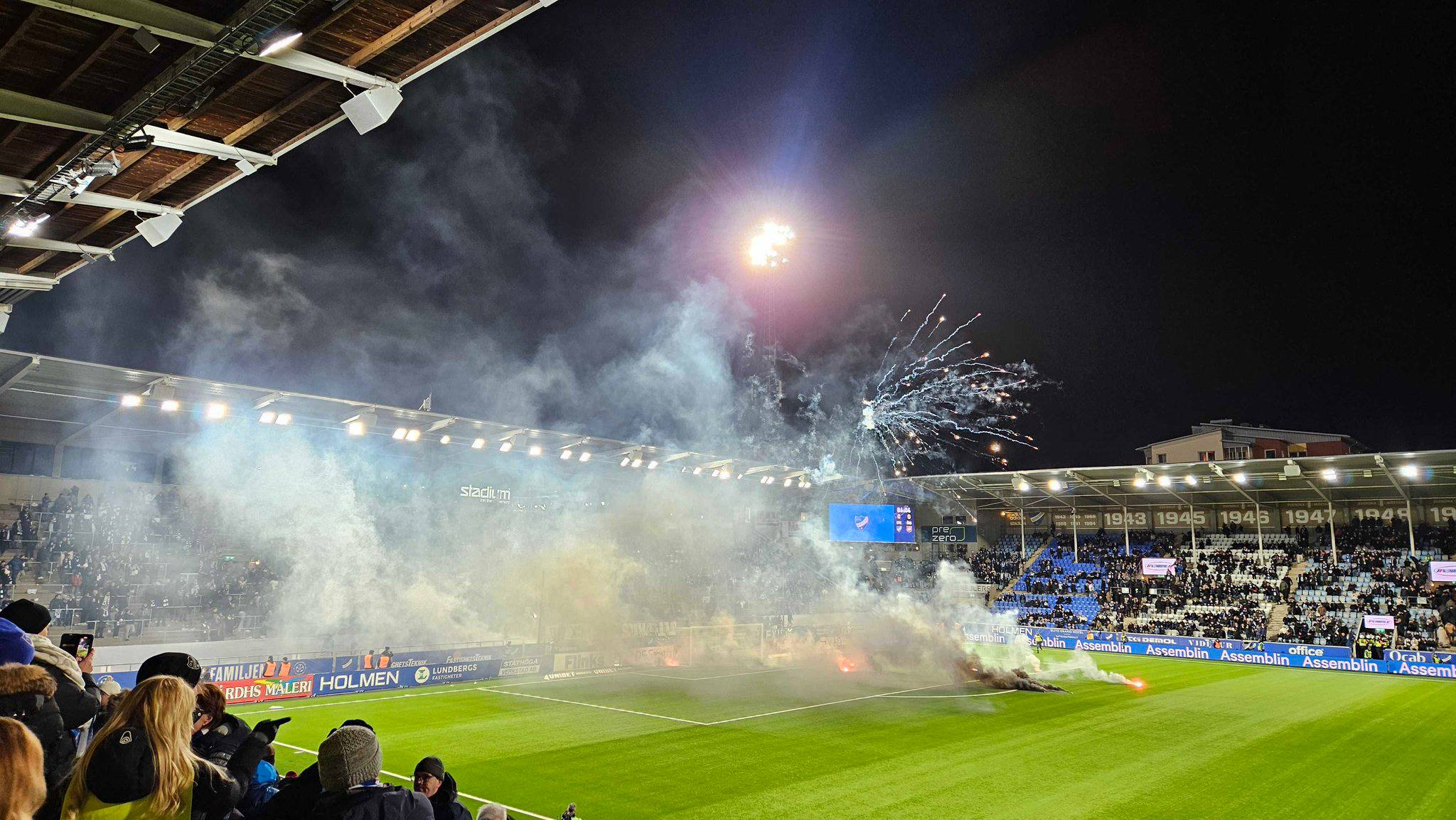 Фанаты подожгли газон и сетку ворот во время матча чемпионата Швеции