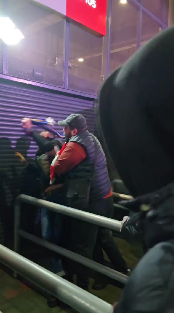 Ультрас красно-белых нанесли мужчине с шарфом армейского клуба несколько ударов с разных сторон и толкнули его на металлическое заграждение стадиона. Потасовку разняли другие болельщики «Спартака», в то время как кто-то из толпы требовал продолжить избиение, а другие люди просили отпустить пострадавшего.