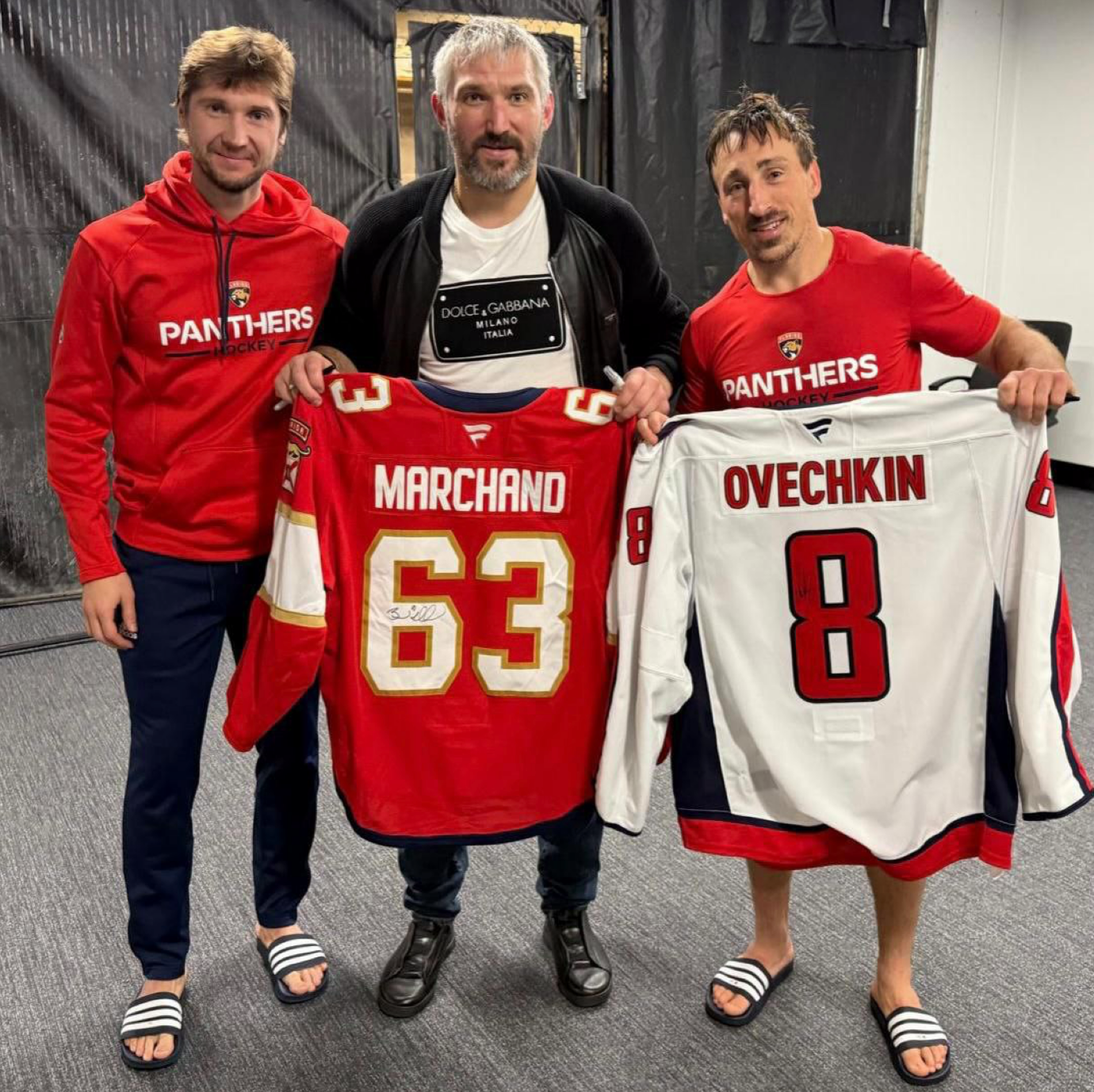 Российский форвард и капитан «Вашингтона» Александр Овечкин после матча регулярного чемпионата НХЛ обменялся джерси с канадским нападающим «Флориды» Брэдом Маршандом.