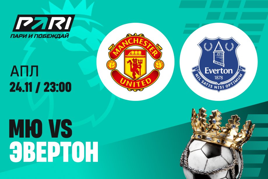 24 ноября «Манчестер Юнайтед» сыграет с «Эвертоном» в рамках 12-го тура АПЛ. Игра пройдет на стадионе «Олд Траффорд» и начнется 23:00 по московскому времени. Букмекерская компания PARI оценила шансы соперников и рассказала о ставках клиентов на предстоящую встречу.
