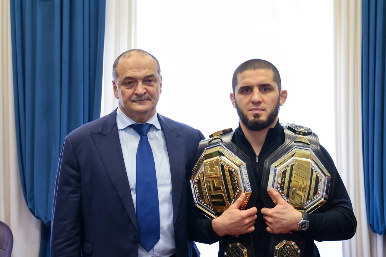 Глава республики Дагестан Сергей Меликов вручил чемпиону UFC в полусреднем весе Исламу Махачеву медаль «За заслуги в области физической культуры и спорта». Такой же наградой был отмечен тренер бойца Сайфула Магомедов.