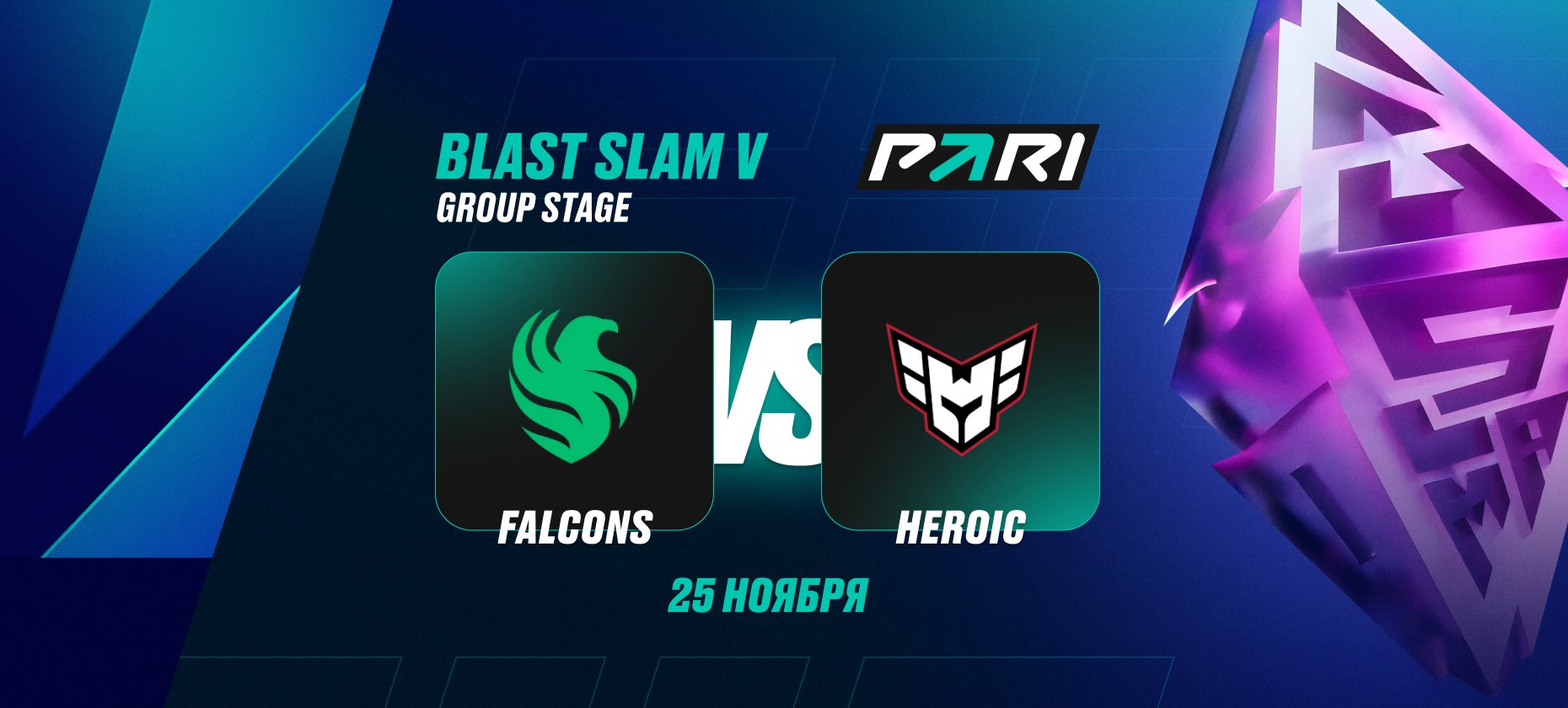 25 ноября стартует групповой этап BLAST Slam V по Dota 2. В одном из матчей первого игрового дня сойдутся Team Falcons и Heroic. Серия в формате best-of-1 начнется в 20:00 по московскому времени. Букмекерская компания PARI проанализировала расклад сил перед игрой и изучила ставки клиентов на предстоящий матч.