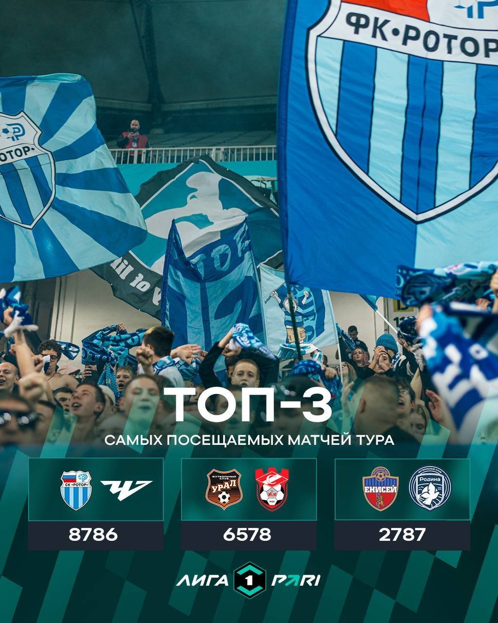 Замкнула тройку игра в Красноярске, где «Енисей» принимал московскую «Родину» (0:0) — там присутствовало 2 787 человек.