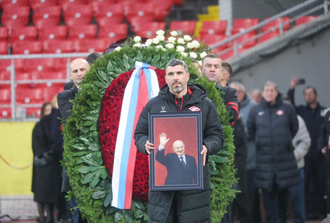 На домашнем стадионе «Спартака» «Лукойл Арена» в Москве началась церемония прощания с олимпийским чемпионом и лучшим бомбардиром в истории красно-белых Никитой Симоняном. Об этом сообщает пресс-служба МИР Российской Премьер-Лиги (РПЛ).