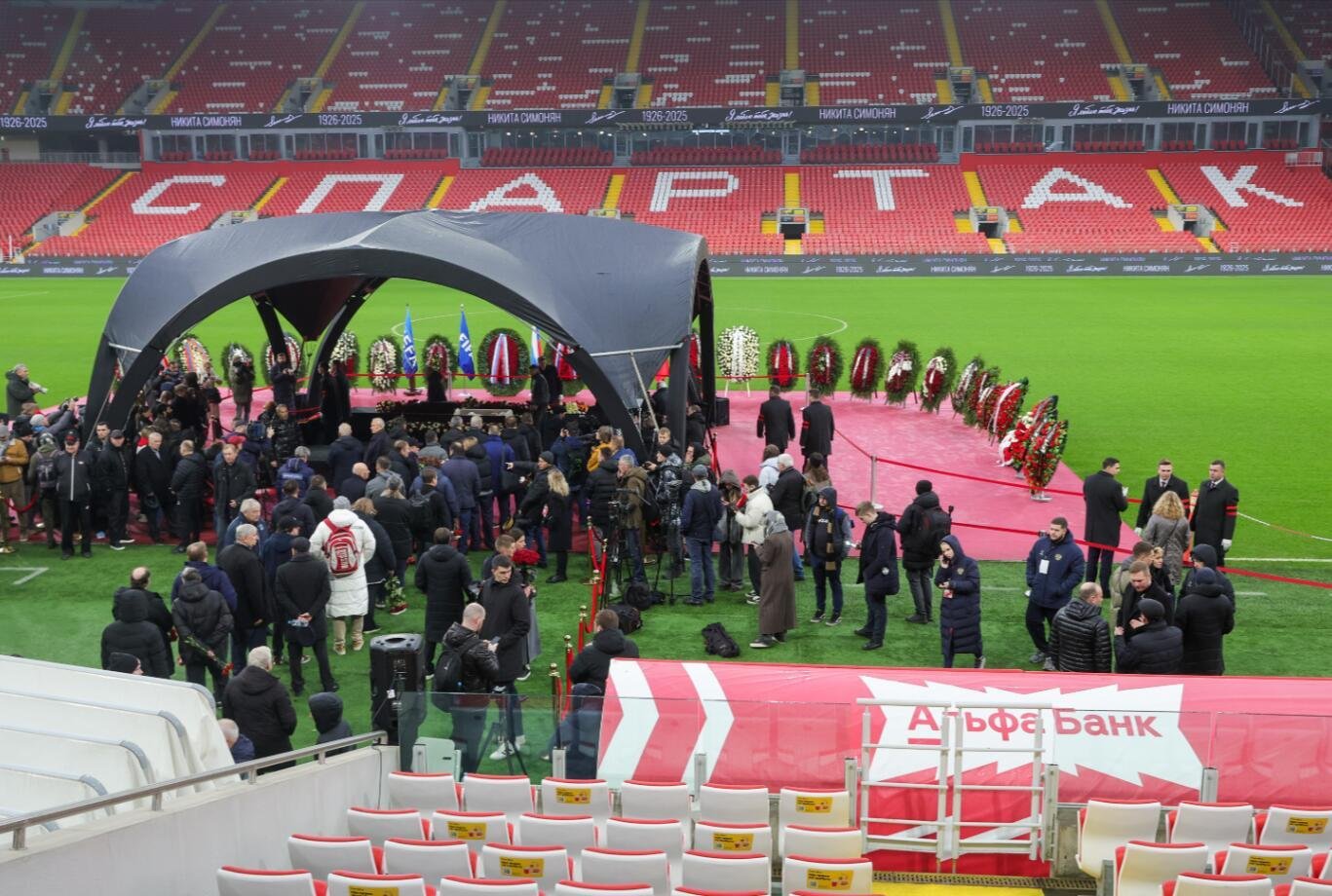 Футболисты «Спартака» в полном составе посетили церемонию прощания с лучшим бомбардиром в истории клуба Никитой Симоняном, которая проходит на стадионе «Лукойл Арена» в Москве. Об этом сообщает «Матч ТВ».