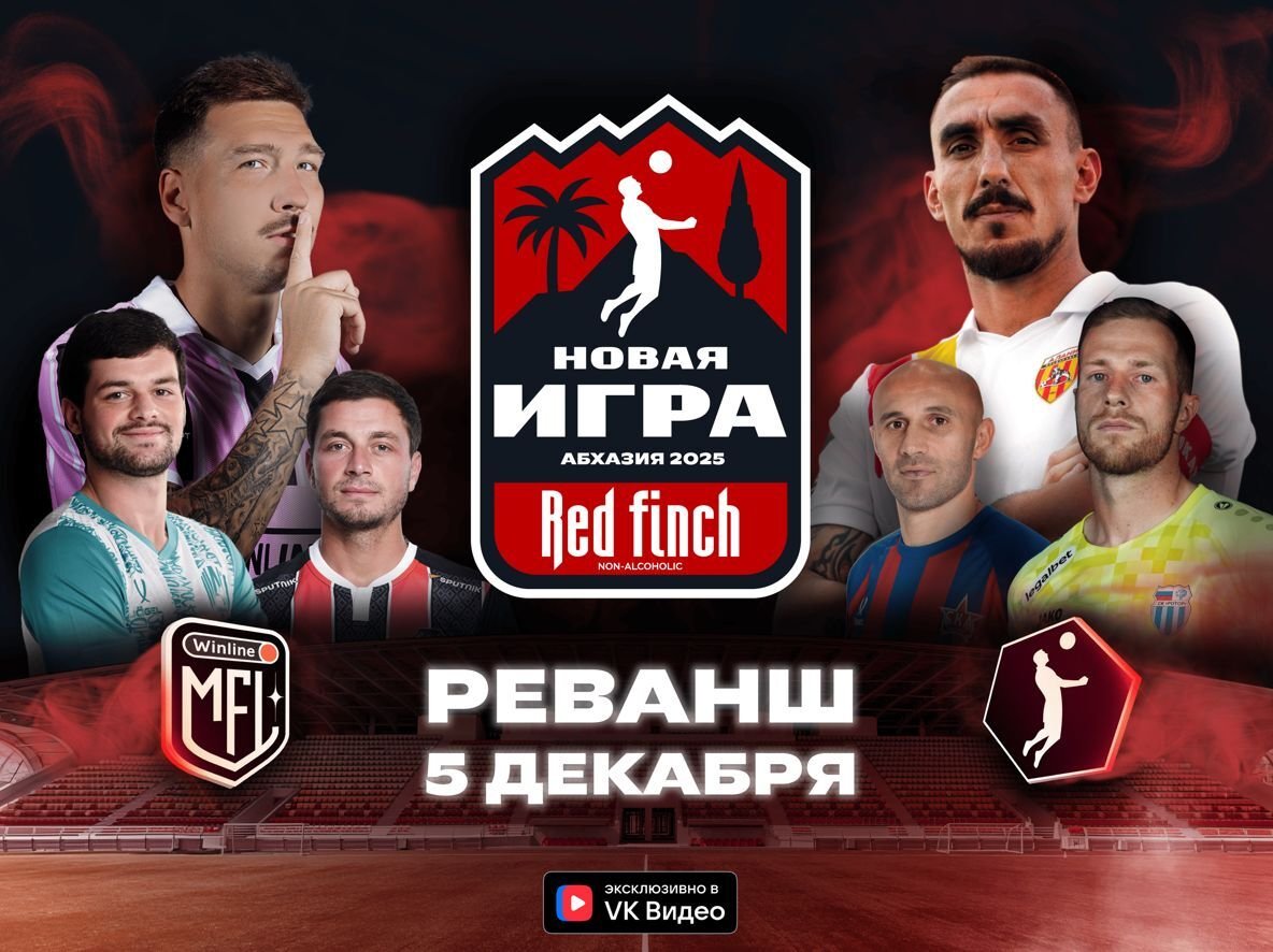 5 декабря в Сухуме на стадионе «Динамо» состоится матч-реванш между сборными командами ФНЛ и Медиалиги – «Red Finch 0.0 Новая Игра». Игра пройдет по медийным правилам: команды проведут два тайма по 25 минут чистого времени. Перед встречей зрителей ждет серия буллиталити, результат которой определит, какая из команд начнёт игру с преимуществом.