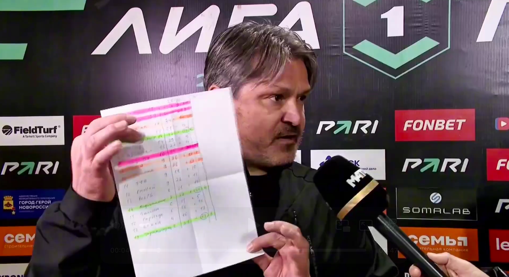 «Приятно заканчивать в тройке». Евсеев показал после матча нарисованную от руки таблицу Лиги PARI