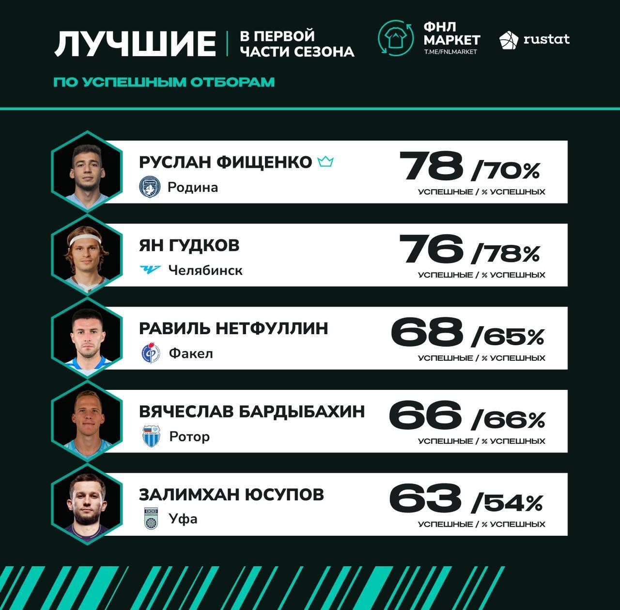 Защитник «Ротора» Бардыбахин вошёл в топ-5 лидеров Лиги PARI по отборам в первой части сезона