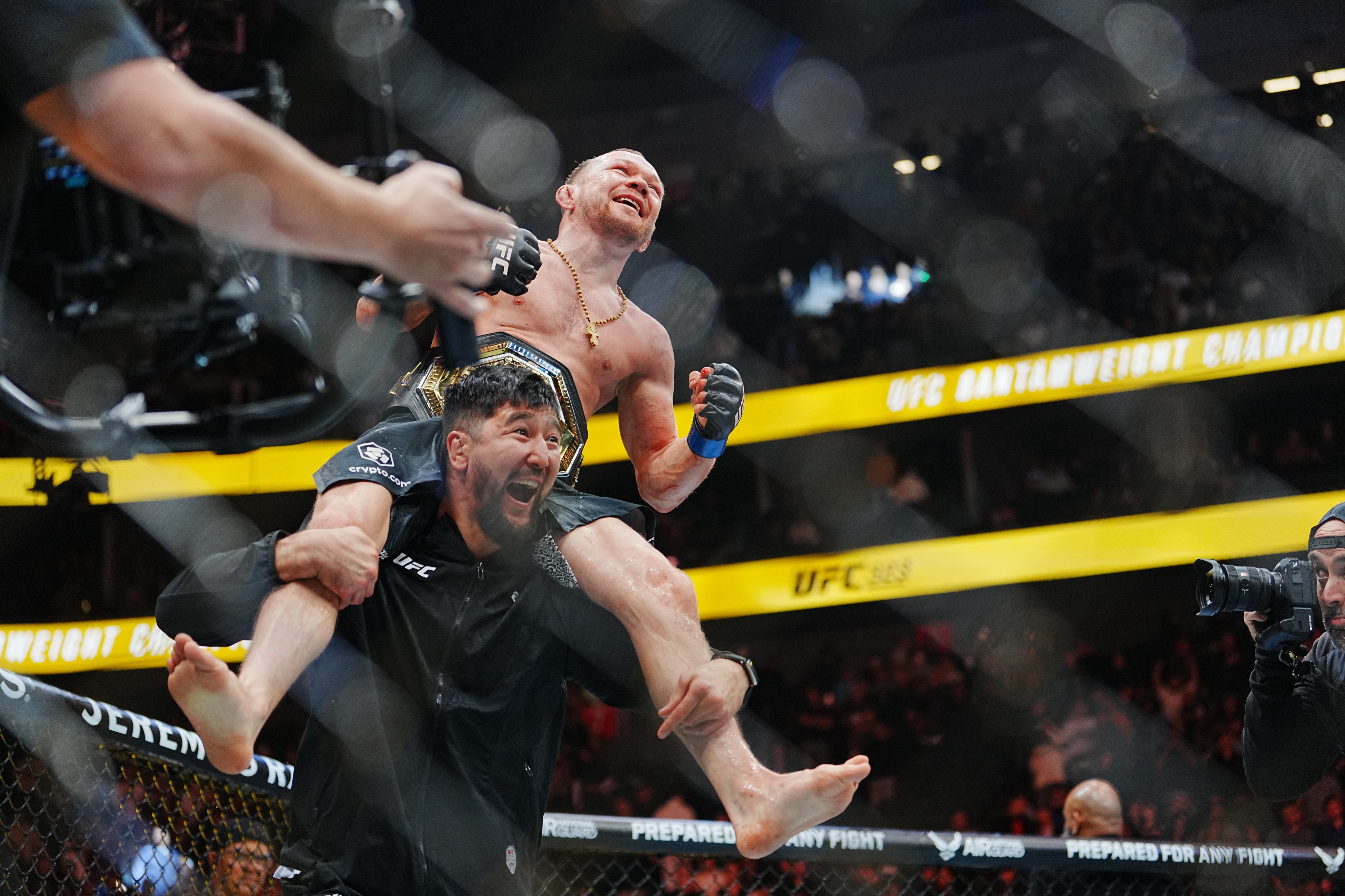 Российский чемпион UFC в легчайшем весе Пётр Ян после победы над грузином Мерабом Двалишвили в титульном поединке на турнире UFC 323 в Лас-Вегасе выложил короткий ролик с завоёванным поясом в соцсетях. На видео спортсмен обнимает трофей, лёжа в постели.