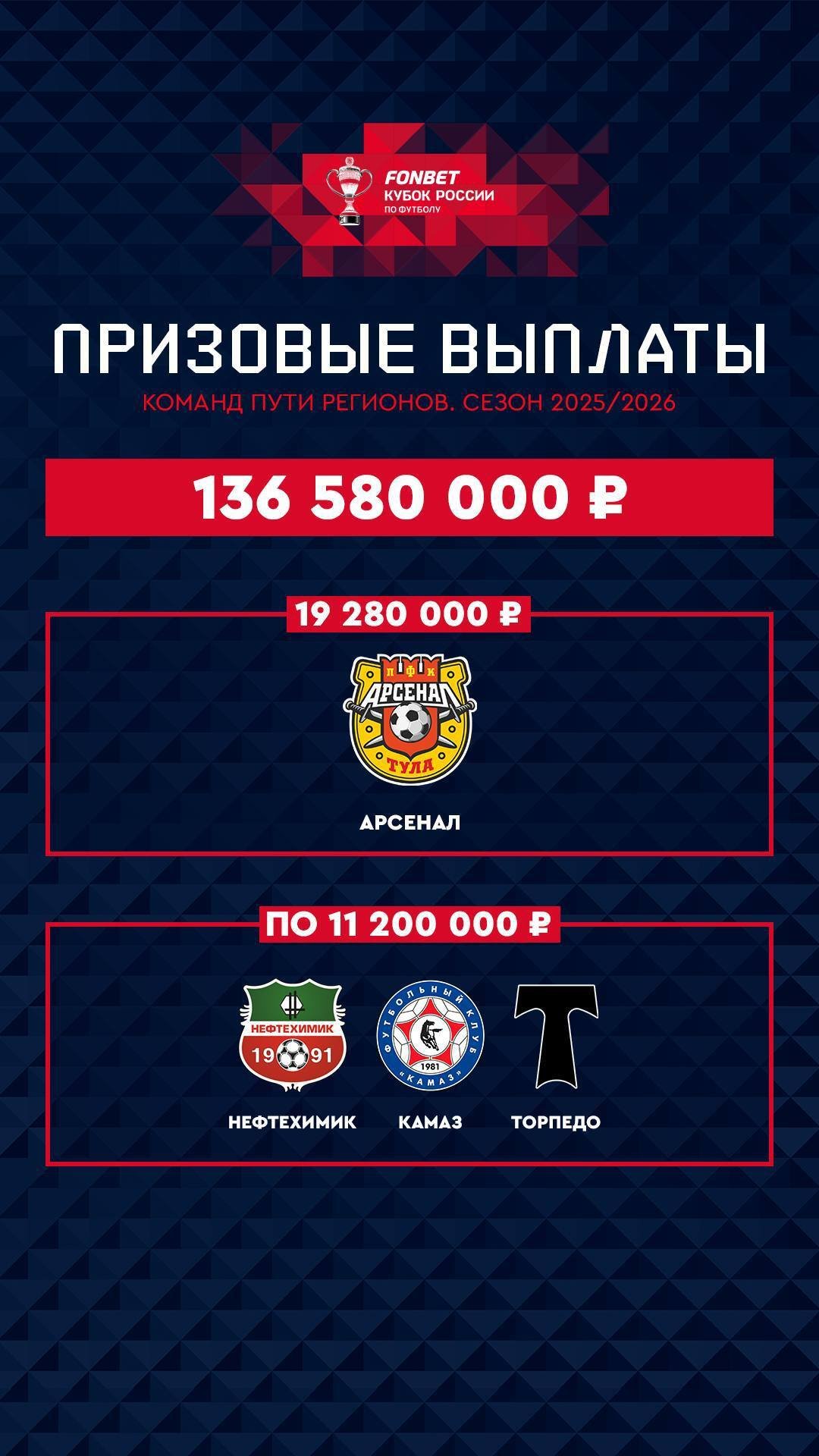 Клубы Пути регионов Кубка России заработали более 130 млн рублей в первой части сезона