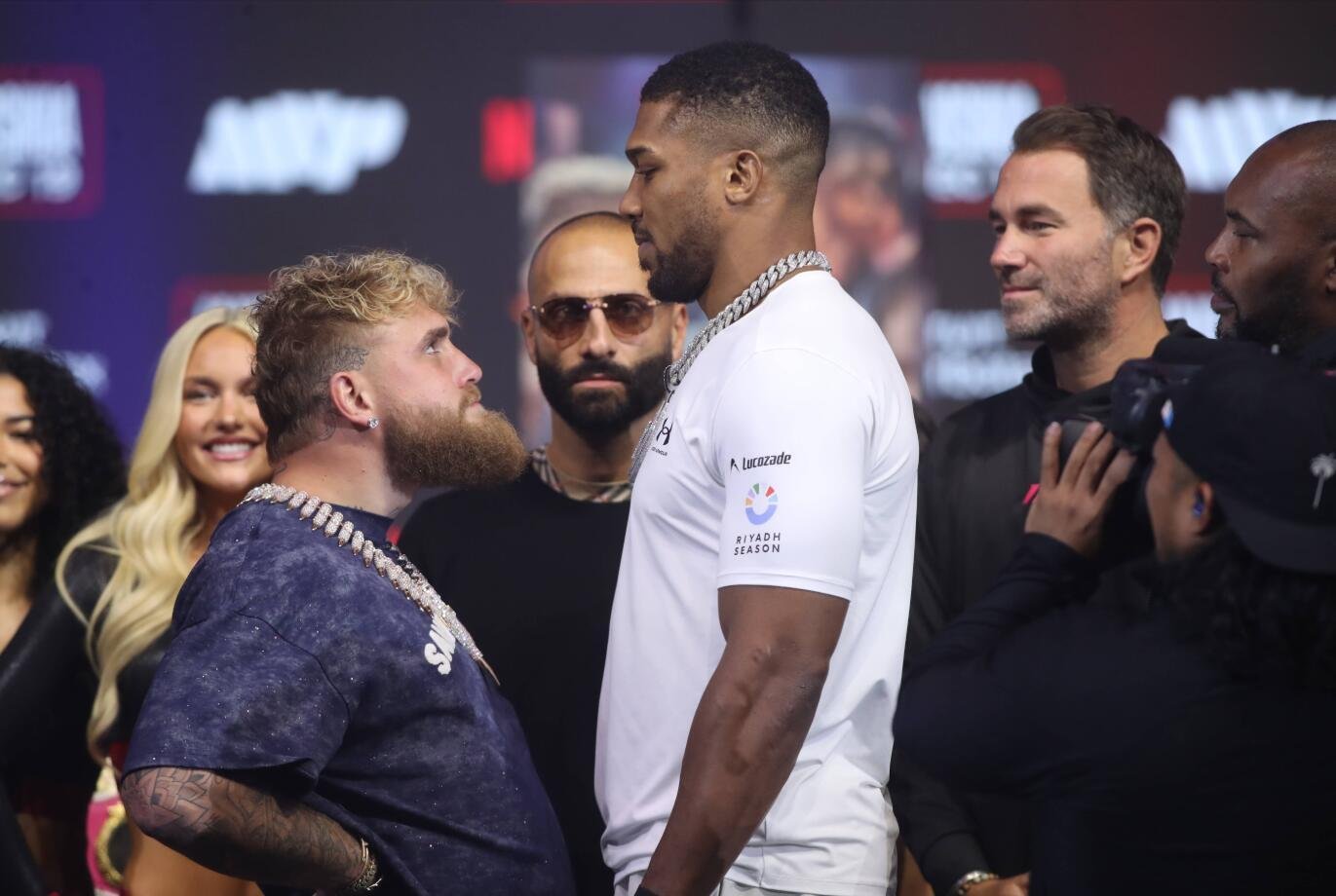 - 36-летний Джошуа на профессиональном ринге выиграл 28 боёв, 25 из которых нокаутом, и четыре раза уступил своим соперникам. На счету 28-летнего Джейка Пола 12 побед и одно поражение.