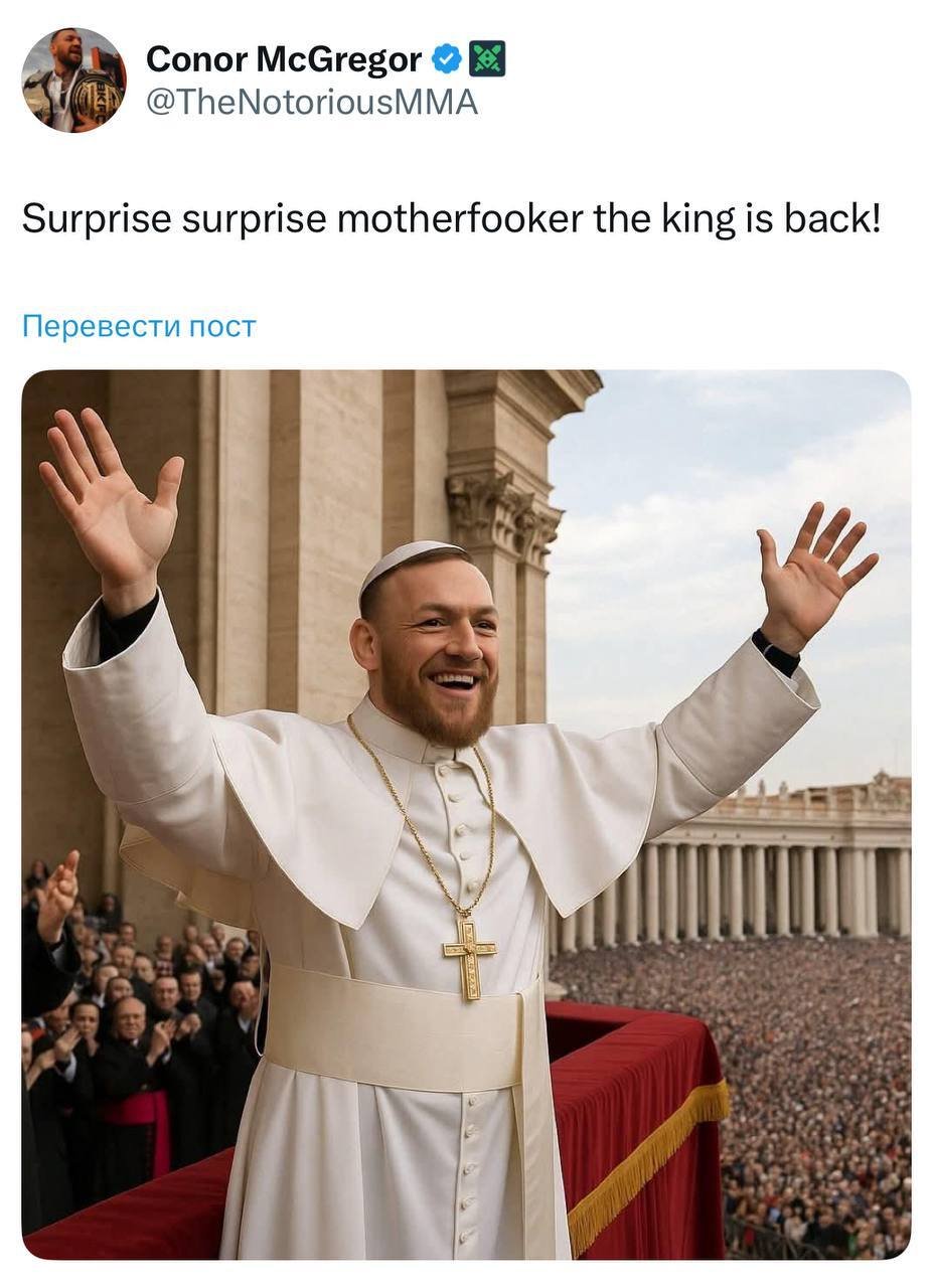 Бывший двойной чемпион UFC Конор Макгрегор отреагировал на избрание нового Папы Римского в своих соцсетях.