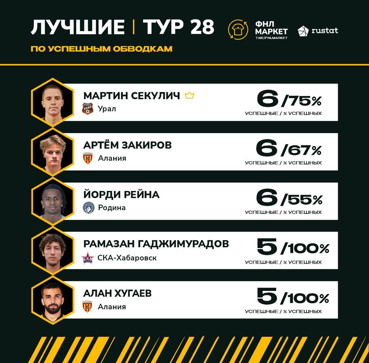Хорватский нападающий екатеринбургского «Урала» Мартин Секулич стал лидером по успешным обводкам в 28-м туре Мелбет-Первой лиги. Об этом сообщил телеграм-канал «ФНЛ Маркет».