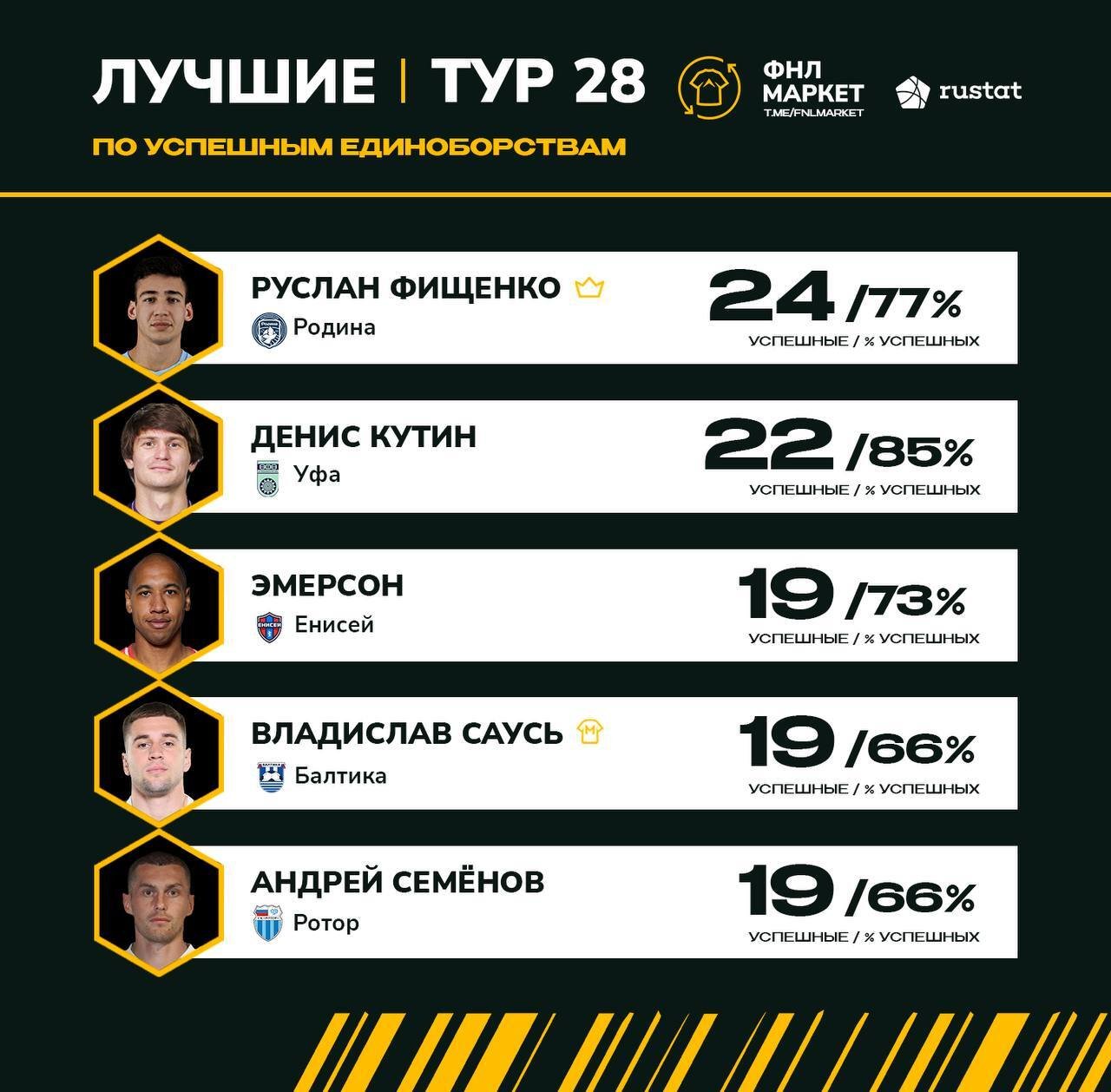Защитник волгоградского «Ротора» Андрей Семёнов вошёл в пятёрку лучших футболистов 28-го тура Мелбет-Первой лиги по успешным единоборствам. Об этом сообщил телеграм-канал «ФНЛ Маркет».