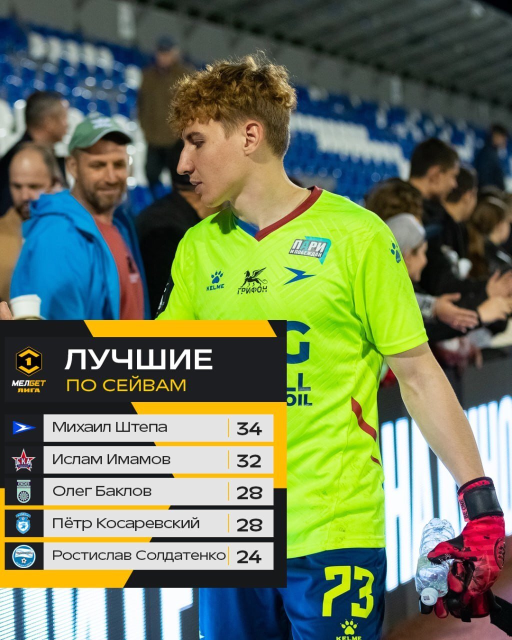 Также в рейтинг вошли Михаил Штепа из песчанокопской «Чайки (34), Ислам Имамов из «СКА-Хабаровска» (32), Олег Баклов из «Уфы» (28) и Ростислав Солдатенко из новороссийского «Черноморца» (24).
