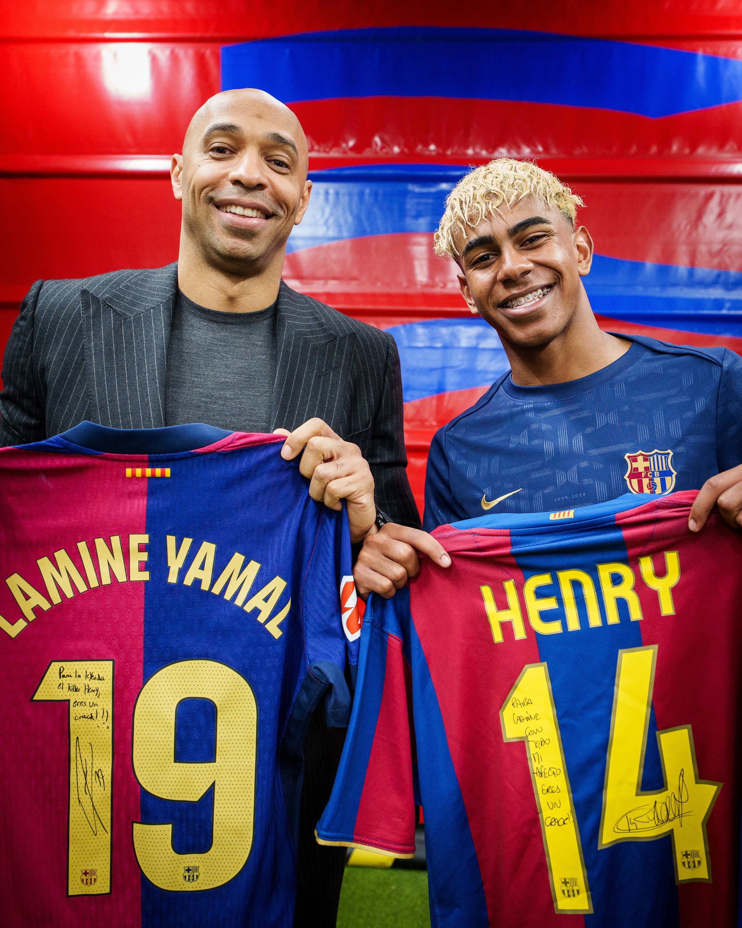 Бывший нападающий «Барселоны» Тьерри Анри и вингер сине-гранатовых Ламин Ямаль обменялись футболками после матча Ла Лиги между каталонцами и мадридским «Реалом» (4:3).
