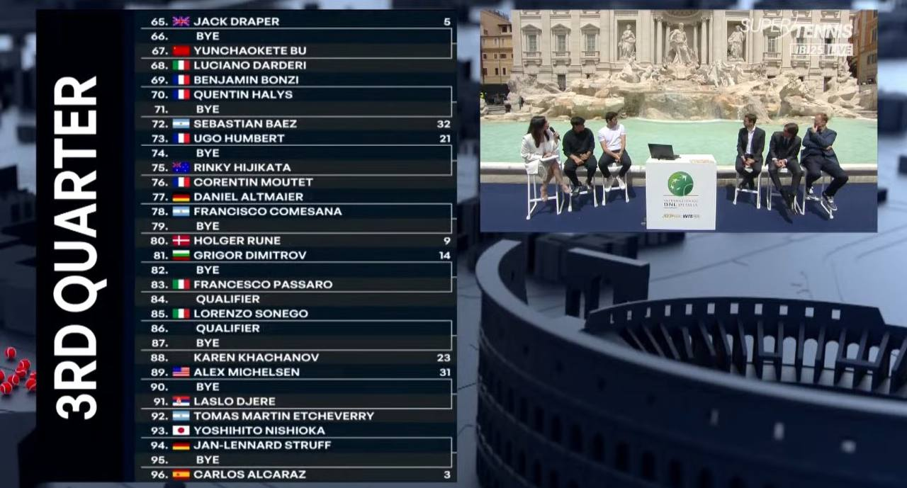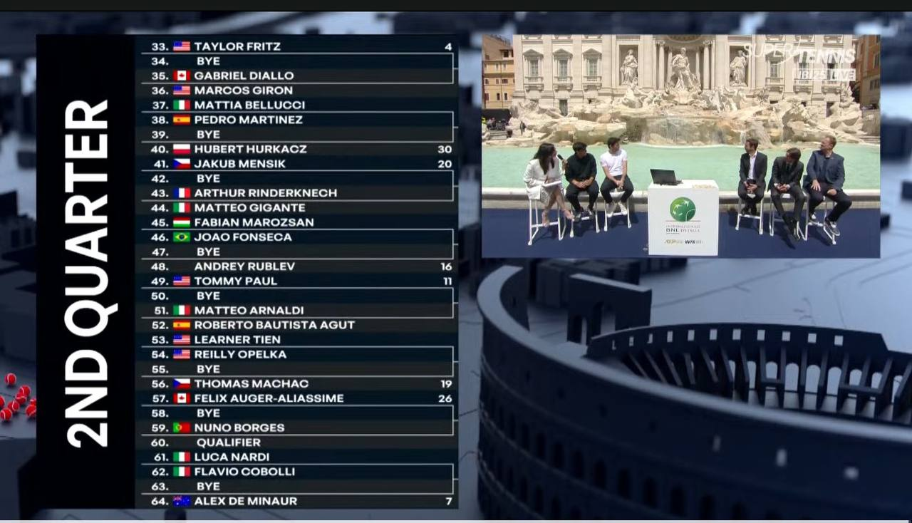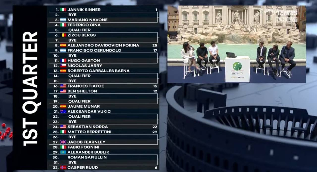 Стала известна основная сетка турнира категории ATP-1000 в Риме.