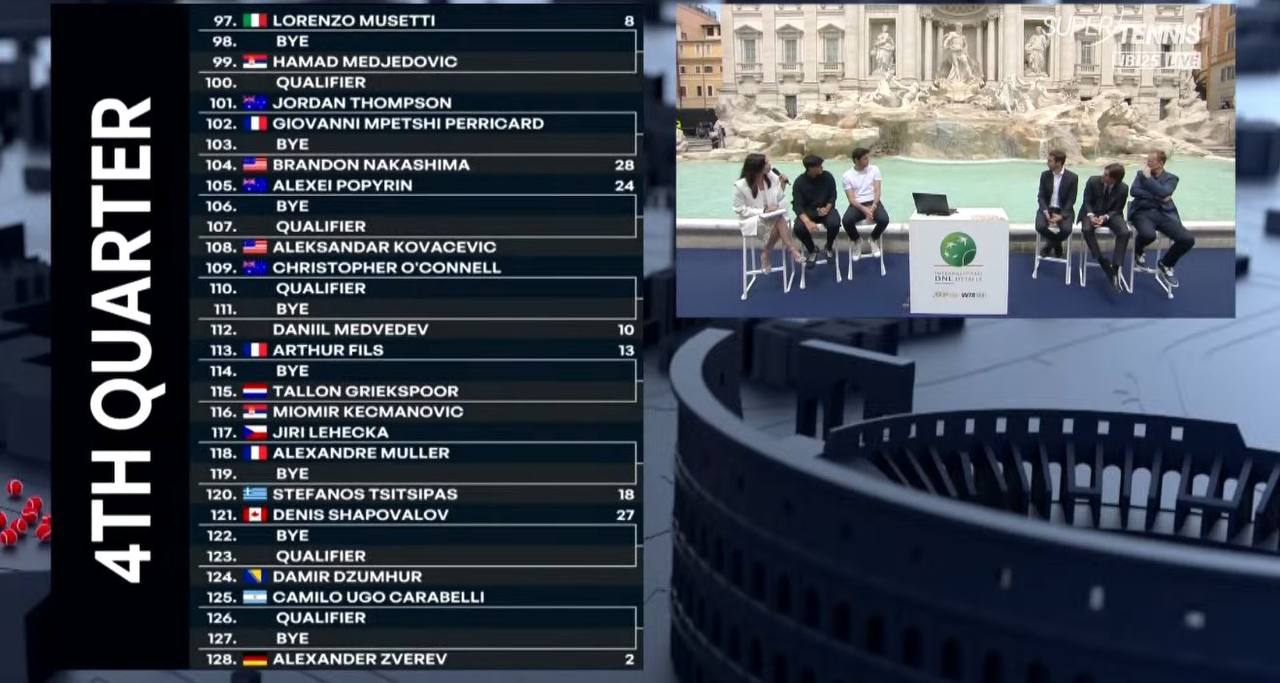 Стала известна сетка «Мастерса» в Риме, где сыграют Медведев и Синнер