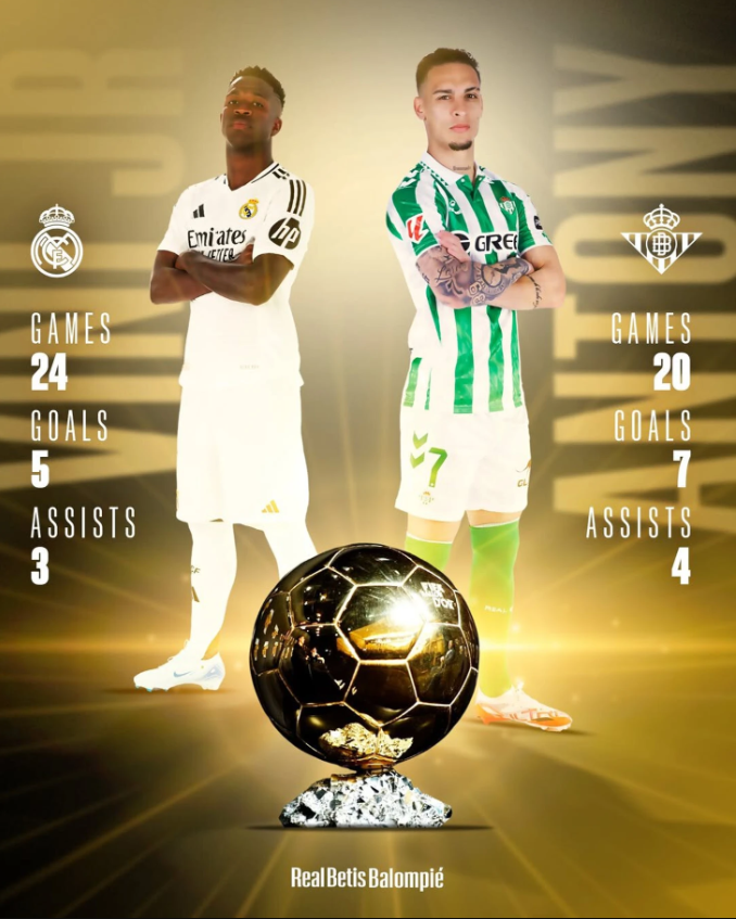 В «Бетисе» считают, что Антони заслуживает «Золотой мяч» больше, чем Винисиус