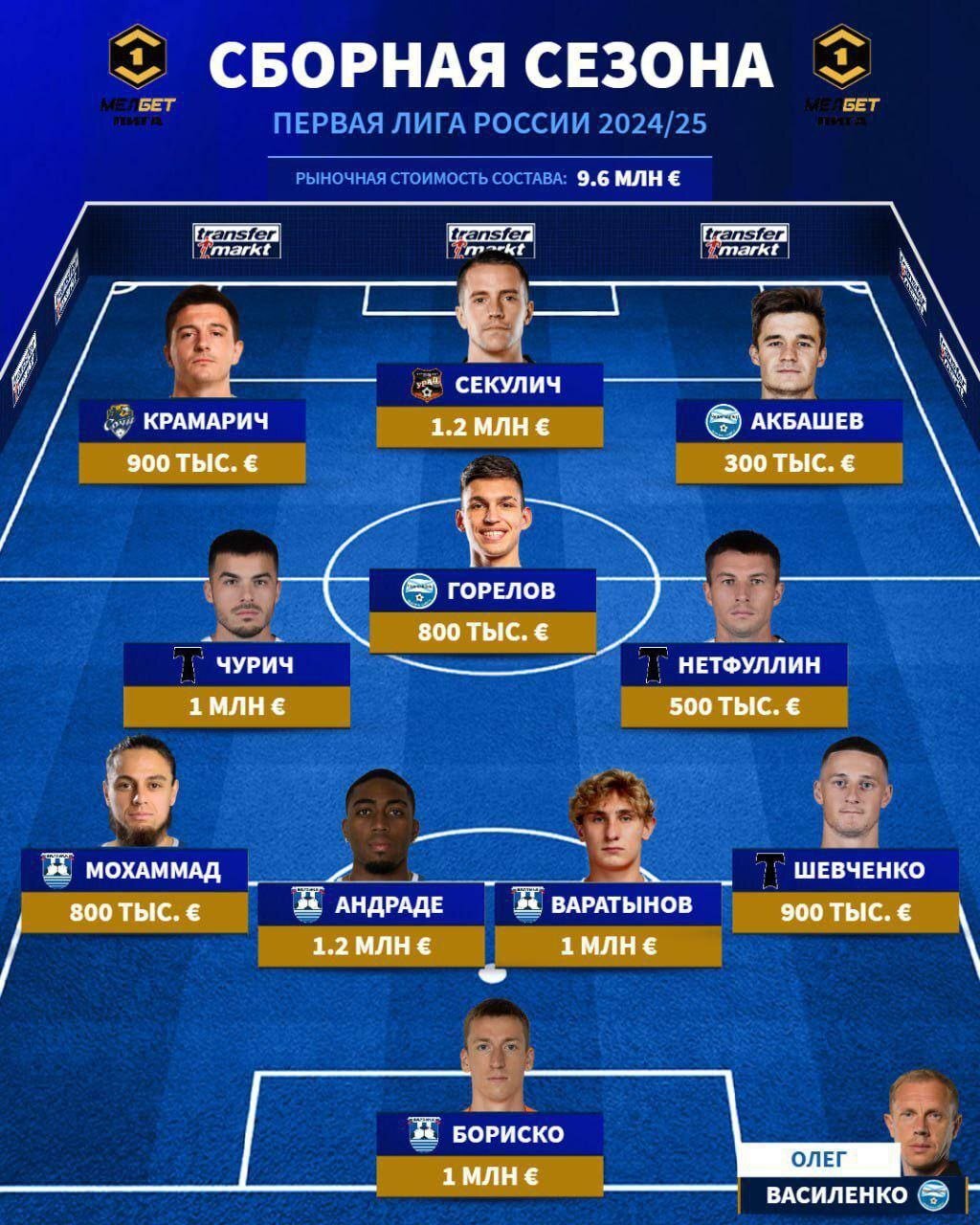 Символическая сборная сезона-2024/25 Первой лиги по версии Transfermarkt