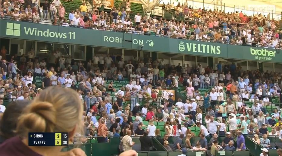 На одну из зрительниц упал рекламный щит во время матча 1/16 финала травяного турнира в Галле (Германия) между американцем Маркосом Хироном и немцем Александром Зверевым. При счёте 2-5, 15-30 в первом сете на 62-летнюю женщину рухнула металлическая панель и ударила её по голове.