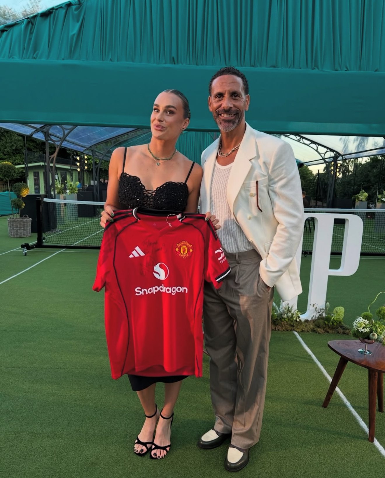 Белорусская теннисистка получила от экс-защитника футболку красных дьяволов. Она посетила мероприятие со своим бойфрендом Георгисом Франгулисом.