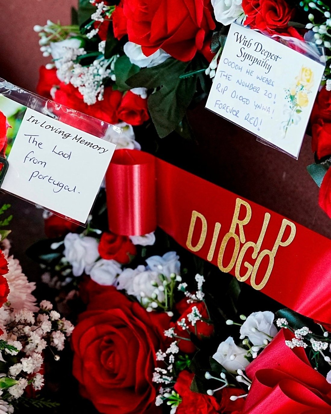 Болельщики несут цветы к стадиону «Ливерпуля» после новостей о смерти Жоты